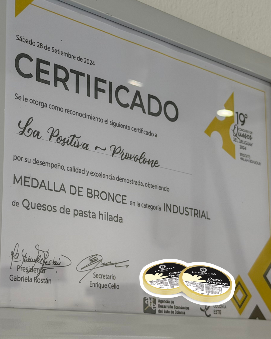 🥉 Medalla de Bronce — Provolone · 19° Concurso de Quesos del Uruguay 2024.