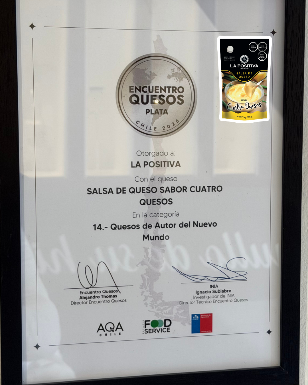 🥈 Medalla de Plata — Salsa Cuatro Quesos · Encuentro Quesos Chile 2025.