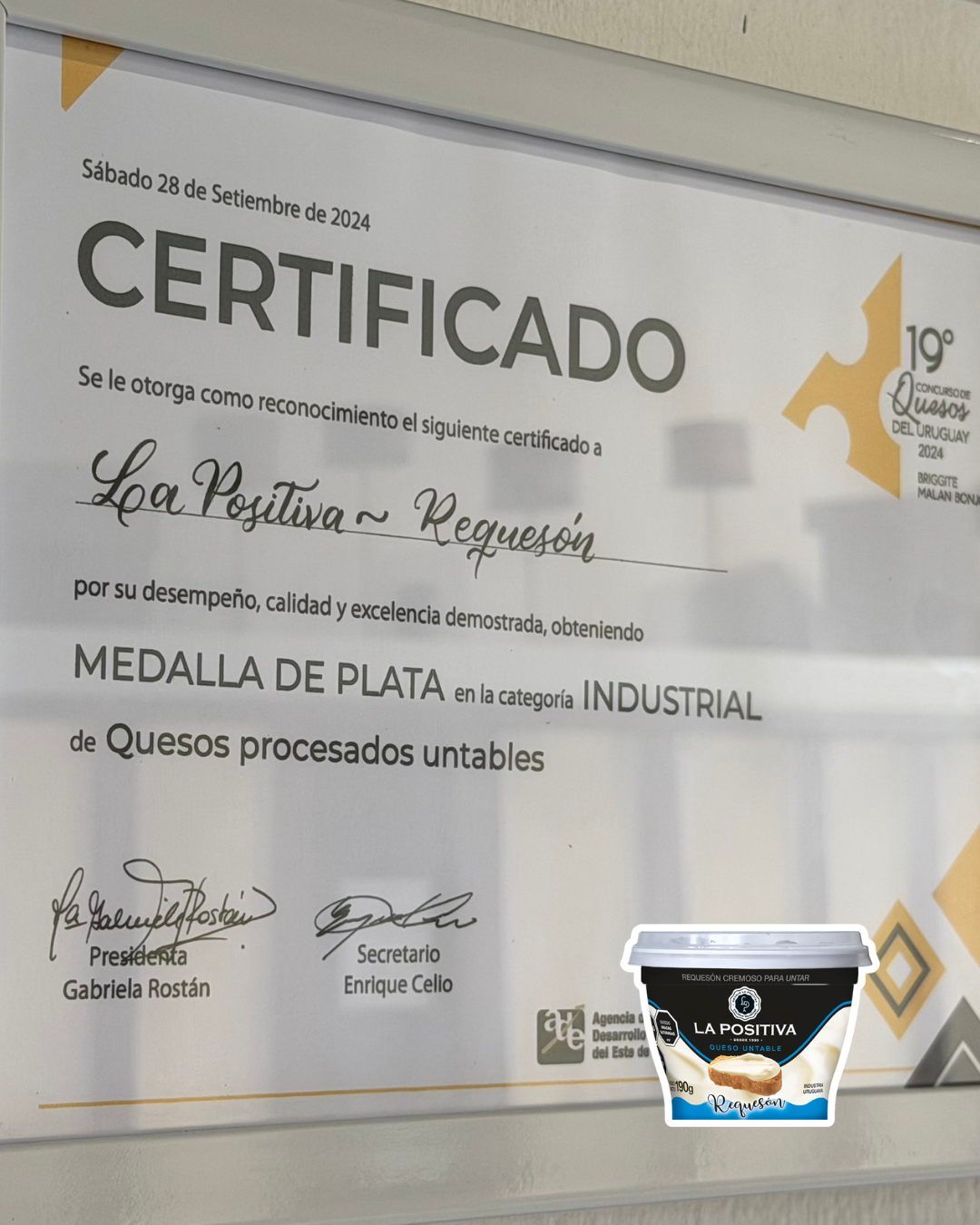 🥈 Medalla de Plata — Requesón · 19° Concurso de Quesos del Uruguay 2024.