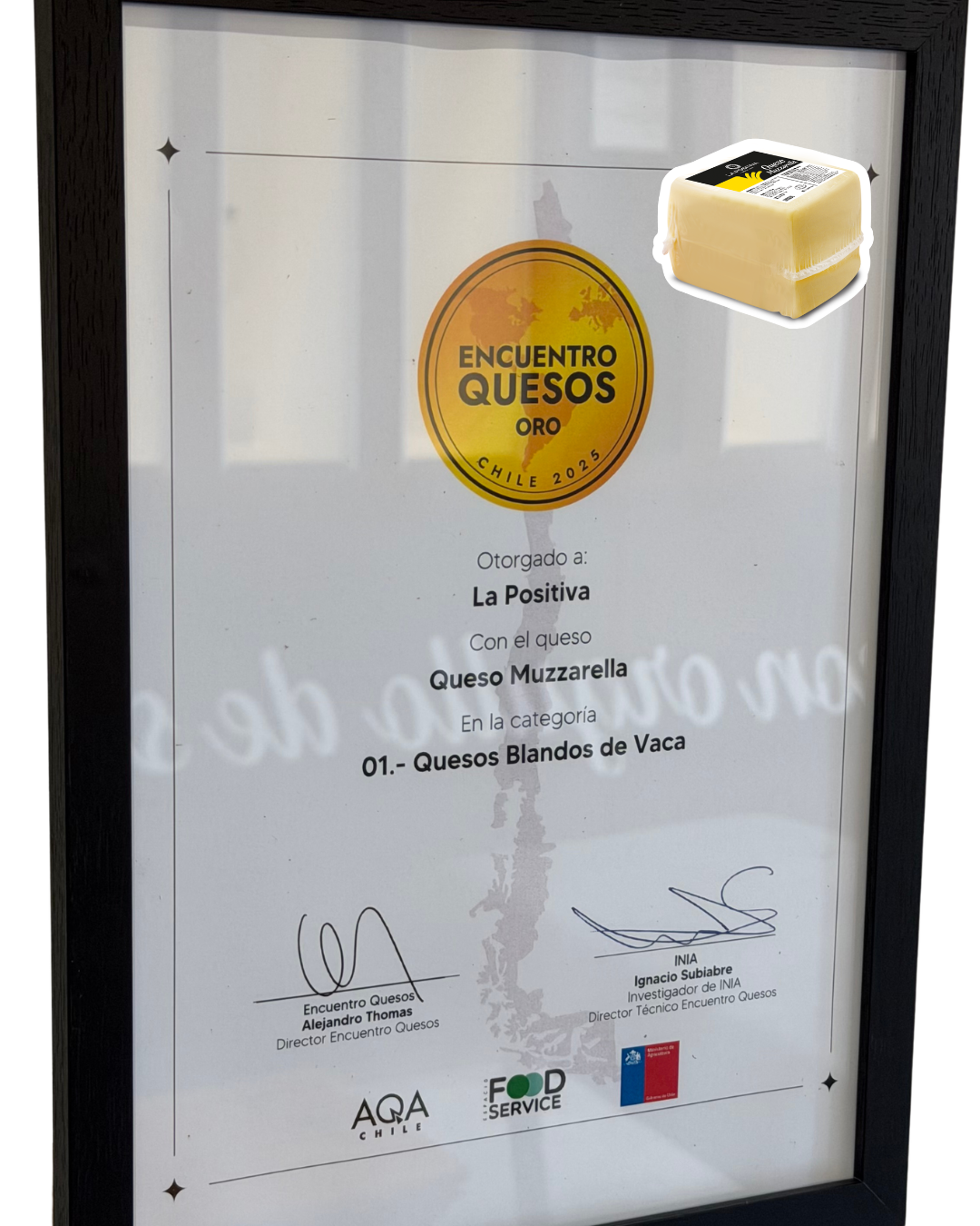 🥇 Medalla de Oro — Queso Muzzarella · Encuentro Quesos Chile 2025.